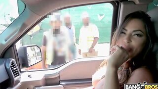 flagLatina MILF with fake boobs - Public outdoor anal and flashing big tits in car