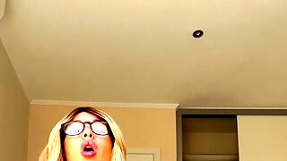 flagA bitch with glasses passionately sucks my dick and watches me cum